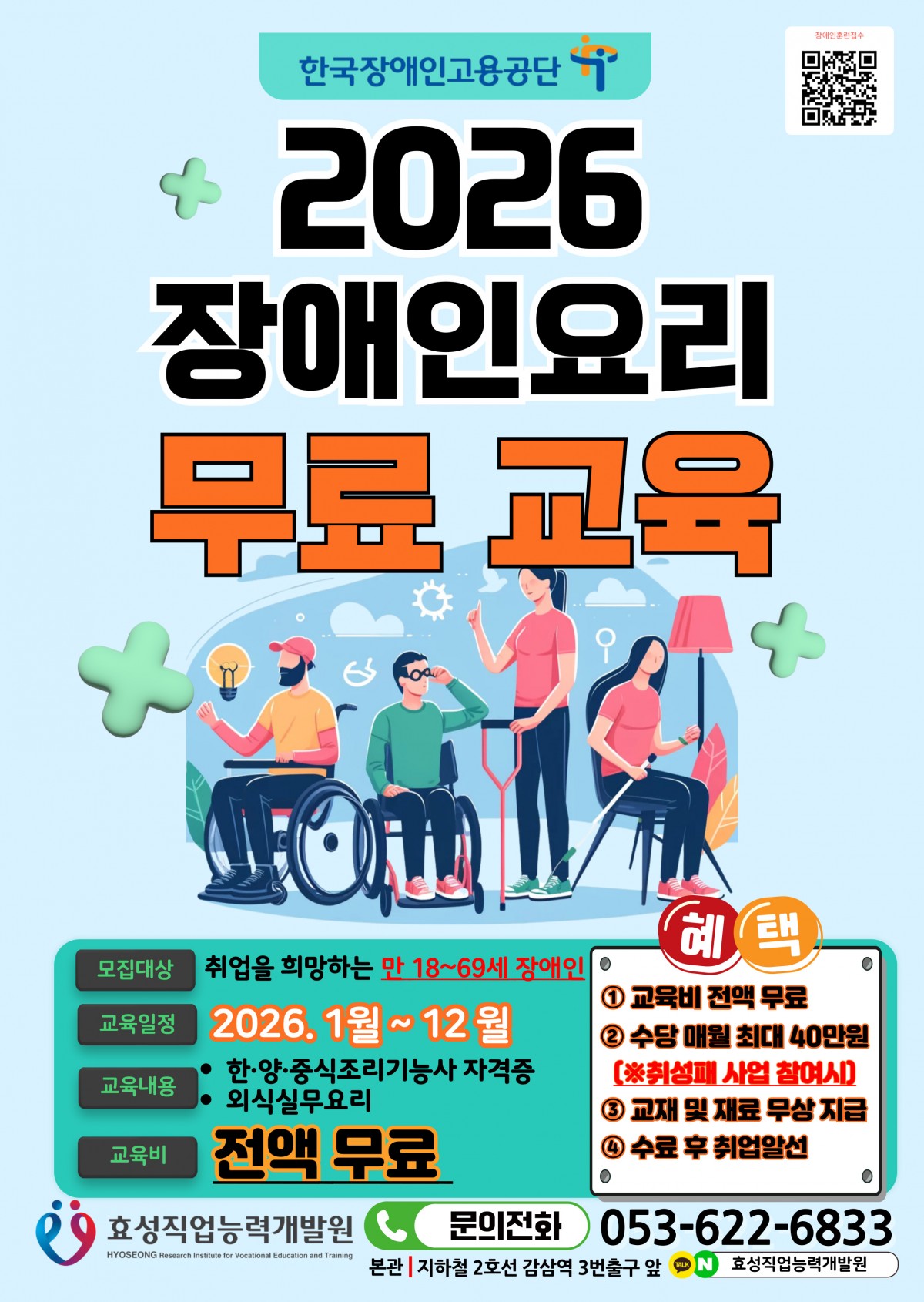 [국비무료] 26년 장애인 요리무료교육 추가모집안내